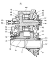シールカバー45の中央部には潤滑油ポート58が設けられ、カバー45の内側と中間軸43の端面との間の空間から、ケーシング12に形成された油路を経て各部に必要な潤滑油が供給される。また、この潤滑油は中間軸43に設けた油路を経由してクラッチ44にも供給される。なお、これ以外の構造は第1実施例と基本的に同じである。