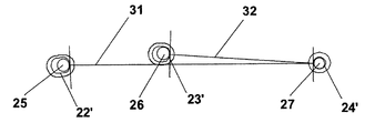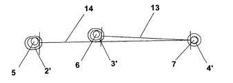 ボルト溝2’,3’は、ボルト穴および軸5,6よりも細長くて長いので、運転温度下では、ボルト軸はボルト溝に対して左右方向にクリアランスを有している。3つのボルトに対する接触ベクトル8,9,10は、チェーンからの鉛直方向の荷重の作用下において主に鉛直方向である。このような取付けは、梁に載荷される状態を生じさせる。