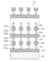 そして、前記各電極は、上記実施の形態1及び2と同様に、それ自体がワード線又はビット線そのもので形成されるか、あるいはワード線又はビット線とは別に形成されてこれらと接続されている。なお、奇数番号の段にある電極が、ワード線そのものに形成されているかワード線と接続されている場合は、偶数番号の段にある電極が、ビット線そのもので形成されるかビット線と接続されている。その逆の場合は、奇数番号の段にある電極が、ビット線そのものに形成されているかビット線と接続され、偶数番号の段にある電極が、ワード線そのものに形成されているかワード線と接続される。