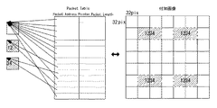 図25に示すように原稿に対し複数の位置に合成するようなナンバリング合成においても、付加画像に関しては、メモリ上に3タイルのみあればよく、パケットテーブルの並び順を操作するだけで付加画像を作成することが可能である。