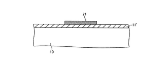つぎに、上述した本実施の形態にかかる薄膜トランジスタの製造方法について説明する。まず、図4−1に示すように、ガラス等の基板10上にゲート層11を形成するための金属層11′を形成する。金属層11′は、タンタル(Ta)、チタン(Ti)、アルミニウム(Al)、クロム(Cr)、銅(Cu)などの単層または多層の金属をスパッタリング法などにより堆積して形成される。つぎに、図4−1に示すようにレジスト21を塗布し、図4−2に示すようにパターニングする。