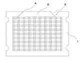図2に示すように、マトリクス状に配された基板領域Aの間及び外周には、所定の捨代領域Bが設けられている。外周の捨代領域Bには、位置決め用の切り欠き部8が設けられている。
