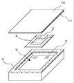 そして更に、基板領域Aのキャビティ部9の開口周縁には、金属から成る蓋体10が取着されている。蓋体10としては、42アロイやコバール,リン青銅等を用いれば良く、その下端部をAu−Ni等の接合材11を介して導体層4にロウ付けし、蓋体10の外周部に沿ってシート基板1の基板領域Aの上面に環状に接合することによって各基板領域の上面に取着されている。