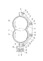 図3及び図4に示すように、本例の固液分離装置の2本の脱液スクリュー21,22は、接触することなく、その羽根部25,26の一部が互いに重なった状態で配置されている。すなわち、両脱液スクリュー21,22を、その中心軸線X1,X2の方向に見たとき、両羽根部25,26の一部がオーバラップした状態で位置しているのである。これに対し、両脱液スクリュー21,22を、これらが互いに重ならない状態に配置することもできる。