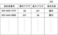 端末状態管理部360は、第1移動体通信端末20と通信可能であるか否かを検出する。例えば、第1移動体通信端末20の保持者が地下道に入った場合や、乗り物等に乗るために第1移動体通信端末20の電源を切った場合などに、端末状態管理部360は、第1移動体通信端末20と通信可能でないと判断する。そして、端末状態管理部360は、第1移動体通信端末20と通信の可否が変化した場合に、この通信の可否を状態情報としてユーザ管理データベース362に記録することにより管理する。また、端末状態管理部360は、先行閲覧許可部230から状態情報及び当該情報を通知すべき通信先端末を識別する情報を受け取り、登録状態管理データベース364に記録することにより管理する。