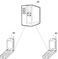 図1は、通信システム10の概略図を示す。通信システム10は、第1移動体通信端末20と、情報処理装置30と、第2移動体通信端末40とを備える。第1移動体通信端末20及び第2移動体通信端末40は、移動体通信網を介して情報処理装置30に接続している。情報処理装置30は、例えば、通信システム10を管理するサーバである。また、情報処理装置30は、第1移動体通信端末20及び第2移動体通信端末40の通信を仲介する中継機であってもよい。一方、第1移動体通信端末20は、例えば、携帯電話である。また、第1移動体通信端末20は、自動車電話であってもよいし、携帯式メール送受信端末であってもよいし、ポケットベルであってもよいし、PDAであってもよい。なお、本実施形態において、第1移動体通信端末20は、移動体通信網に接続され持ち運び可能な移動体通信端末であるが、第1移動体通信端末20の形態は、本実施の形態に限定されない。例えば、第1移動体通信端末20は、据え置き型コンピュータであってもよいし、サーバであってもよい。第2移動体通信端末40についても第1移動体通信端末20と同様に、本実施形態に示す形態に限定されない。