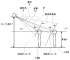 本実施の形態において、人物の身長Hは、通常の頭の上までの高さではなく、顔中心Pまでの高さである。人物の身長Hとしては、人物の平均身長が用いられる。身長Hは、カメラの設置パラメータと共に予め本装置に記憶されていてよい。