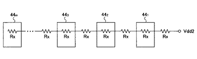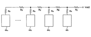 MOSトランジスタM23,M25,M27それぞれのソースは抵抗R16,R17,R18それぞれを介して電源Vdd2に接続されており、MOSトランジスタM23,M25,M27はスイッチ36,38,40がオンのときにMOSトランジスタM21とカレントミラー回路を構成する。