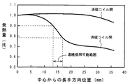 図10は、図9の定着ローラの軸方向の発熱量の分布を示したものである。図示するように、消磁コイルを開いた状態では、減磁作用がないため、略均一な発熱が見られるが、消磁コイルを閉じると、消磁コイルがある部分の発熱が大きく落ち込んでいることが分かる。 FIG. 10 shows the distribution of heat generation in the axial direction of the fixing roller of FIG. As shown in the figure, when the degaussing coil is opened, there is no demagnetizing action, so almost uniform heat generation is seen, but when the degaussing coil is closed, it can be seen that the heat generation in the part where the degaussing coil is greatly reduced. .