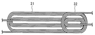そこで、特許文献1には、図9に示すように、定着ローラで幅の狭い記録紙の定着を行う際に、記録紙が通紙されない部分の励磁コイル31に重複するように消磁コイル32を配置した発明が記載されている。これらの定着装置では、消磁コイル32のループを閉じると、消磁コイル32に励磁コイル31によってもたらされる磁束の変化を打ち消すような電流が流れ、記録紙が通紙されない端部の交番磁界を減殺して、定着ローラの発熱量を部分的に低減できるようになっている。