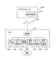 現金自動取引装置は大凡次のような仕組みになっている。現金自動取引装置は専用回線で金融機関(例えば、銀行等)のホストコンピュータと接続され、ホストコンピュータは顧客の口座情報を記憶した口座DB(データベース)および本人認証のための認証DB(例えば、顧客IDに対応した暗証番号)を備えている。顧客が口座から現金の引き出しを行なう場合は、まず現金自動取引装置の画面に表示されている初期メニューから「引き出し」を選択する(一般に初期メニューはタッチパネルになっており、「引き出し」の表示ボタンを触れることにより現金の引き出しを選択したことになる)。現金自動取引装置は顧客のこの選択された情報を受け付けると、顧客が口座に対する本人であるかどうかの本人認証の処理に入る。現金自動取引装置は顧客に対してキャシュカードの挿入を要求し、続いて暗証番号の入力を要求する。現金自動取引装置はキャッシュカードから顧客IDを読み取り、入力された暗証番号を取得してホストコンピュータに送信する。ホストコンピュータは送信された顧客IDと暗証番号とを認証DBを参照して本人であることが認証されれば、引き出し金額の入力を促す画面を表示するよう現金自動取引装置に指令する。現金自動取引装置のこの画面表示に基づいて顧客から入力された引き出し金額の情報をホストコンピュータが受信すると口座DBを参照して顧客の口座残高を調べる。さらに、この支払い処理に対する手数料の発生があるかどうかを調べ、口座残高が引き出し金額+手数料の金額以上であれば現金自動取引装置に現金の払い出しの指令と口座残高(今回の払い出し金額と手数料とを精算した口座残高)とを送信すると共に、口座DBの更新(顧客の口座に対して支払い金額、手数料の出金および残高の記録)を行なう。現金自動取引装置はこのホストコンピュータの指令に基づいて現金を出金すると共に利用明細書をプリントアウトし、取引を終了する。 The automatic teller machine is structured as follows. The automatic teller machine is connected to a host computer of a financial institution (for example, a bank) via a dedicated line, and the host computer stores an account DB (database) that stores customer account information and an authentication DB (for example, a customer) for identity authentication. A personal identification number corresponding to the ID). When a customer withdraws cash from an account, first select “withdrawal” from the initial menu displayed on the screen of the automatic teller machine (generally, the initial menu is a touch panel and the “withdrawal” display button You have chosen to withdraw cash by touching. When the automatic teller machine accepts the selected information of the customer, the automatic teller machine starts the process of authenticating whether or not the customer is the principal of the account. The automatic teller machine requests the customer to insert a cash card, and then requests the input of a personal identification number. The automatic teller machine reads the customer ID from the cash card, acquires the entered password, and transmits it to the host computer. The host computer instructs the automated teller machine to display a screen for prompting the input of the withdrawal amount if the identity is authenticated by referring to the authentication DB with the transmitted customer ID and password. When the host computer receives information on the withdrawal amount input from the customer based on this screen display of the automatic teller machine, the account balance of the customer is checked with reference to the account DB. Furthermore, it is checked whether or not there is a fee for this payment processing. If the account balance is more than the withdrawal amount + the amount of the fee, the cash withdrawal instruction and the account balance (the amount of this payment and the fee) Account balance), and update the account DB (payment amount of money, withdrawal of fee and record of balance for customer's account). The automatic cash transaction apparatus withdraws cash based on the command from the host computer, prints out a usage statement, and ends the transaction.