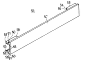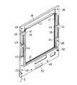図6、図7、図27及び図28に示すように、大開口部38の全周縁であってフレーム本体35の前面側には凹部39が形成されている。同凹部39の左右の内周縁は折り曲げ形成されてフレーム本体35の裏面側に突出されており左右突出部39a,39bとされている。左右突出部39a,39bは上下方向に沿って延出させられ、同左右突出部39a,39bにはそれぞれ左右の案内レール41が装着されている。同凹部39の下部内周縁は折り曲げ形成されてフレーム本体35の裏面側に突出されており下部突出部39cとされている。下部突出部39cは左右方向に沿って延出させられ、同下部突出部39cには支持レール42が装着されている。