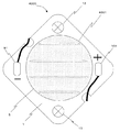 図12は、別形態の発光装置4000を上面から見た模式図である。発光装置は、アルミナ基板1、発光部4001、正電極外部接続ランド101、負電極外部接続ランド91、取り付け部13、第一蛍光体含有封止樹脂層5で構成されている。