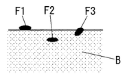 一般に、物品の製造時に物品に付着する異物には、図8のように、物品Bの表面に付着して除去可能な異物F1と、物品Bの内部に埋入されて除去不能な異物F2と、物品Bの内部に一部が埋入されて除去不能な異物F3とがある。以下では、異物F1が物品Bの表面に付着して除去可能である状態を「異物付着」、異物F2の全体が物品Bに埋入されて除去不能な状態を「異物混入」、異物F3の一部が物品Bに埋入されて除去不能な状態を「異物部分混入」と呼ぶ。異物混入や異物部分混入は、異物F2,F3を除去することができず物品Bの品質が損なわれるから、欠陥品として処分することが要求される。 In general, the foreign matter that adheres to the article during the manufacture of the article includes foreign matter F1 that can be removed by attaching to the surface of the article B, and foreign matter F2 that is embedded in the article B and cannot be removed, as shown in FIG. There is a foreign matter F3 that is partially embedded in the article B and cannot be removed. In the following, the state in which the foreign matter F1 adheres to the surface of the article B and can be removed is “foreign matter adhesion”, the state in which the entire foreign matter F2 is embedded in the article B and cannot be removed is “foreign matter mixed”, and the foreign matter F3 A state in which a part is embedded in the article B and cannot be removed is referred to as “foreign matter partial mixing”. Foreign matter contamination and foreign matter partial contamination cannot be removed from the foreign matters F2 and F3, and the quality of the article B is impaired. Therefore, disposal as a defective product is required.