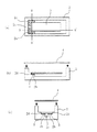 図3は、本発明の圧電デバイスに係わるパッケージの製造工程を示す図で、(a)は第一工程、(b)は第二工程、(c)は第三工程を示す図である。尚、(a)〜(c)は、図2(a)のA−A’断面部をそれぞれ図示している。
