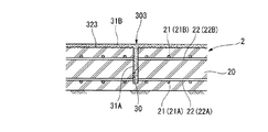 図4に示すように、せん断補強部203は、溝30の周囲の側壁部2の内側の表層部分が斫られ、その斫り部分23が溝30内のせん断補強材料31Aと一体のせん断補強材料31Bで被覆された構成になっている。斫り部分23は、溝30に沿って延在する凹部であり、内側の壁鉄筋21B,22Bが露出する深さまで略均一に削り取られている。また、斫り部分23は溝30よりも幅広に形成されており、この斫り部分23の横幅方向の中央部分に溝30が形成されている。そして、断面視凹形状の斫り部分23の内側に充填されたせん断補強材料31Bは、側壁部2の内側面と面一に形成されている。すなわち、せん断補強部203は、断面視T字形状を成しており、溝30の内側に形成された板状のウェブ部35と、ウェブ部35に対して垂直に形成された板状のフランジ部36と、を備えている。上記したウェブ部35及びフランジ部36は、同一のせん断補強材料31A,31Bにより形成されており、ウェブ部35とフランジ部36とは一体に形成されている。なお、上記したウェブ部35のせん断補強材料31Aとフランジ部36のせん断補強材料31Bは、上述した第1の実施の形態におけるせん断補強材料31と同様の充填材料からなる。