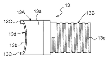 According to a third aspect of the present invention, a decorative ring is provided at an end of the cover body and an end of the stopper body of the fixed hood portion, and an inner peripheral surface diameter of the decorative ring is set to the casing. The outer peripheral surface of the decorative ring and the outer peripheral surface of the end of the cover body, and the outer peripheral surface of the decorative ring and the outer peripheral surface of the end of the stopper body. The connecting parts are configured in a state where they are smoothly connected without a step, and the operation and effects thereof are as follows.