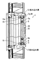 図1(b)及び(c)に示すように、左右の竪枠11の見込み面には、上下方向の略中央部に係合部材(係合部)25が固定されている。尚、図3に示すように、竪枠11には上下位置に合計2つの嵌合孔27、29が形成されており、係合部材25は上下の2つの嵌合孔27、29に嵌合することにより固定している。