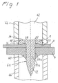 - 円形溝(22)は、鋲軸(10a〜f)に隣接した丸みを帯びた表面(24)を有し、この表面は、円錐状表面(26)につながっていることを特徴とする、請求項1又は2に記載の方法。