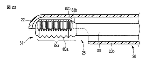 図22に示すように本変形例の本体20aには、係合部26bと係合可能な凹部81a,81b,81cが設けられている。凹部81a,81b,81cは、長手軸方向5の周方向において略等間隔に配設されている。つまり凹部81a,81b,81cは、長手軸方向5の周方向において略120度離れている。