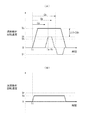 まず、図14(A)に示す制御方法について説明する。清掃部材41の回転速度Vsを所定速度Vhよりも高速の速度V1又はV2に設定して清掃動作を行う場合、ADF制御部11は、先行する原稿9aが読取ガラス21を通過するタイミングT1に合わせて、モータ駆動部47に励磁信号(パルス信号)を出力し、モータM4を駆動させると共に、清掃部材41の回転を開始させる。これと同時に、ADF制御部11は、モータM4を駆動するために出力したパルス数のカウント動作を開始し、パルスカウント値を更新していく。清掃部材41は、その回転速度Vsが速度V1又はV2に到達すれば、清掃動作が終了するまでその速度が維持される。そしてパルスカウント値が予め定められたカウント値Caになれば、ADF制御部11は、モータ駆動部48に励磁信号(パルス信号)を出力し、モータM5を駆動させると共に、異物掻取部材44を回転方向R2に回転させる。このとき、異物掻取部材44の回転速度Vtは、清掃部材41の回転速度Vsとの速度差ΔVが所定速度Vh以下となるように設定される。そして異物掻取部材44はその回転速度Vtに達すれば、その速度が維持される。