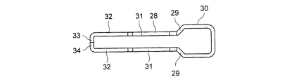 厚肉部91は、牽引分離部材28のループ部30と略同じ形状であるループ部92と、中間広幅部31に相当する一対の中間広幅部93とを備えている。一方、薄肉部95は、先端部32に相当する一対の先端部96と、一対の先端部96の先端同士を接続する接続部97とからなるものであり、図23に示すように接続部97には三角形状をなす一対の切欠98が設けてある。一対の先端部96は、対応する厚肉部91の外側面にそれぞれ溶接(例えばスポット溶接)してある。図21から明らかなように、薄肉部95は厚肉部91よりも薄肉であり、その機械的強度は厚肉部91より小さい。