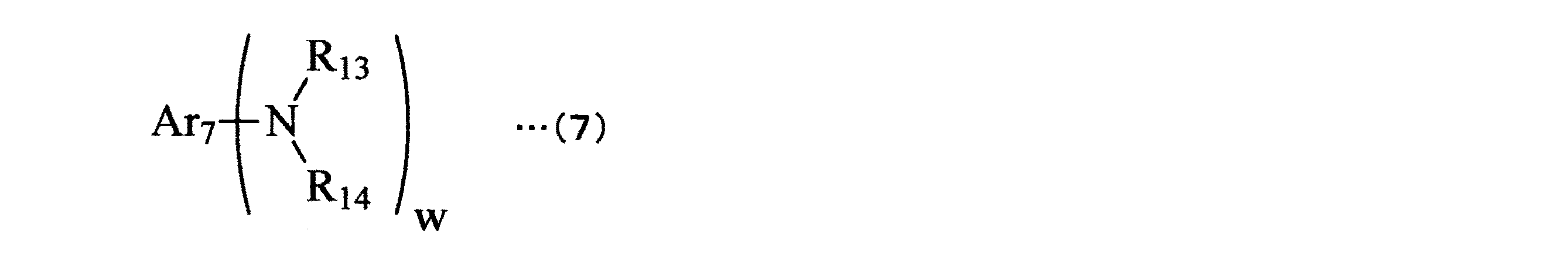 Ar7のアリール基としてはフェニル基、ナフチル基、ビフェニリル基、ターフェニリル基、ピレニル基、フルオレニル基、9,9−ジメチル−2−フルオレニル基、アズレニル基、アントリル基、トリフェニレニル基、クリセニル基を挙げることができる。
