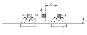 以上説明したように、導体プローブ2が目盛り線の中央の直上に位置しているときに、導体プローブ2が対峙している目盛り線とその隣りの目盛り線との間に存在するようにガード導体3が配置されていると、ガード導体3の効果が高くなる。このように、本発明によれば、画像形成装置の感光ドラムや中間転写ベルト上に書かれた数十〜数百μmの静電潜像目盛りを感度よく検出することが可能となる。