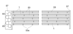 そして、基板支持部52は、複数の支持用回転軸53の夫々に複数設けられた支持用リング状体53aにて支持する状態で基板1を載置支持するように構成されており、複数の搬送用回転軸36が回転することにより、基板1を載置搬送するように構成されている。