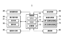 図1、2に示すように、画像形成システム1は、画像読取部20、表示操作部30、画像形成部40、給紙ユニット50、後処理部60、画像処理部70、通信部80及び制御部10、を備えて構成される。