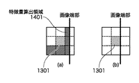 図14(a)は、赤目候補領域の外接矩形(ブロック1301)が画像の右端近傍に、ややマージンを残して存在する場合を示す。この場合、周辺領域の各ブロック内に一画素でも画素が存在するならば、その画素を用いて特徴量判定を行う。