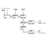 火力発電所等で発生したフライアッシュはフライアッシュ受入タンク10に供給される。前記フライアッシュは微細な粉末状であり、さらに微細粉末の表面には未燃カーボンが付着している。まず、スラリー化工程では、これらを処理するためにスラリータンク4にフライアッシュを投入し、水(循環水)を加えスラリー化する(スラリー化工程)。