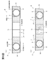 なお、第2,3図に示すように、この実施の形態では、各基板10〜18に、それぞれ4条の配管収容用溝2が設けられている。該裏張りシート8は、この実施の形態では、細長い帯状のものであり、これらの配管収容用溝2を1条ずつ覆っているが、隣り合う複数の配管収容用溝2を連続して覆うものであってもよく、あるいは各基板10〜18の下面の略全体を覆うものであってもよい。