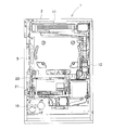 まず、内ケース22については、前ケース部材31を、その後方にメイン制御基板21を介在させた状態で、前方からネジ24、24・・により後ケース部材32へネジ止めして組み立てる。このとき、メイン制御基板21も、同ネジ24、24・・により、内ケース22内部において後ケース部材32へネジ止めされることになる。このとき、前ケース部材31は、後ケース部材32の開口内へ嵌め込まれた状態となっており、強引にこじ開けようとした際にメイン制御基板21の表面(素子設置面)が露出しにくいようになっている。