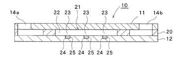 なお、上述した第1の実施の形態乃至第5の実施の形態の各々において、シリコン含有基材20に電極24を設ける例を示してきた。しかしながら、これに限らず、電極24は、第1ガラス基材となる貫通孔用ガラス基材11または主ガラス基材12に設けられてもよい。例えば貫通孔用ガラス基材11(または主ガラス基材12)に電極24を設けるとともに、シリコン含有基材20に前記電極24に対応する凹部25を形成し、電極24が設けられた貫通孔用ガラス基材11(主ガラス基材12)とシリコン含有基材20とを接合して、電極24を凹部25内に収容しても良い。あるいは、貫通孔用ガラス基材11(または主ガラス基材12)に凹部26を設けるとともに、この凹部26に電極24を収容し、電極24が設けられた貫通孔用ガラス基材11(主ガラス基材12)とシリコン含有基材20とを接合しても良い。