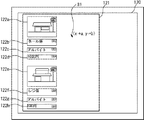 図13は、削除された配置領域122eがレイアウト領域121以外の領域に配置されている状態を示す表示例である。このように、削除指示でレイアウト領域121外に配置された配置領域122a内に配置されているデータを、配置対象データに指定して、上記と同様に、いわゆるドラッグアンドドロップ等の操作によって、配置指示を受け付けるようにしても良い。例えば、データをドロップした位置、即ち、データを配置した位置が、配置指示により指定されるデータを配置する位置となる。なお、レイアウト領域121外の配置領域に配置されたデータを、最終的に利用しない場合や、処理を終了する際等には、この配置領域を削除するとともに、この配置領域に配置されていたデータも、データ格納部101から削除するようにしてよい。