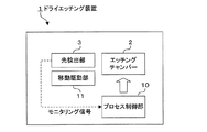 図2は本発明の第1の実施の形態に係るドライエッチング装置の概念図である。ドライエッチング装置1は、大きくは、前述したエッチングチャンバー2と光検出部3の他に、プロセス制御部10と、移動駆動部11とを備えた構成となっている。