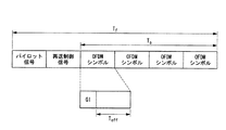 図5は本実施形態のパケット構成の一例を示す図である。図5に示すように、パケットは、時間長Tfであり、その先頭にパイロット信号、続いて再送制御信号、および区間Tsの4つのOFDMシンボルに情報データから生成された信号(前記システマティックビットおよび前記パリティビットから生成された信号)が時間多重されている。OFDMシンボルは、GI挿入部115で挿入するGI区間とIFFT部113の出力である有効シンボル区間Teffからなる。