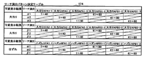 ステップS724にてリーチ演出パターンを決定した後には、そのリーチ演出パターンに応じたリーチ演出用テーブル指定バッファ更新設定値によって、リーチ演出用テーブル指定バッファ値を更新する設定を行う(ステップS725)。例えば、ステップS724にてリーチ演出パターンが大当りAPA1−1〜大当りAPA1−3、大当りAPA2−1〜大当りAPA2−3、ハズレHPA1−1〜ハズレHPA1−3、ハズレHPA2−1〜ハズレHPA2−3のうちから選択されて決定された場合には、リーチ演出用テーブル指定バッファ値を“2”に更新する。これに対して、ステップS724にてリーチ演出パターンが大当りAPB1−1〜大当りAPB1−3、大当りAPB2−1〜大当りAPB2−3、ハズレHPB1−1〜ハズレHPB1−3、ハズレHPB2−1〜ハズレHPB2−3のうちから選択されて決定された場合には、リーチ演出用テーブル指定バッファ値を“1”に更新する。
