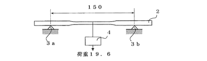 本発明の実施の形態の合金と比較材料について耐クリープ性の実験を行った。250℃の温度雰囲気で43時間曲げ加重を負荷する耐クリープ性実験Iと200℃の温度雰囲気で100時間曲げ加重を負荷する耐クリープ性実験IIとを行いそれぞれ変位を測定した。耐クリープ性実験Iでは、試料14(本実施の形態のマグネシウム合金−6)、試料15、試料16、試料17(特開2004−238676の合金−2)、試料18(AZ91D−1)及び試料19(ADC12)を用いて図5Aに示す試験片2を鋳造した。耐クリープ性実験IIでは、試料14(本実施の形態のマグネシウム合金−6)、試料20(本実施の形態のマグネシウム合金−7)、試料15、試料16、試料17(特開2004−238676の合金−2)、試料21、試料22、試料19(ADC12)を用いて図5−1に示す試験片2を鋳造した。試験片2は、ASTMのB−85の引張試験片(平行部の直径6.35mm、標点間距離57.5mm、長さ210mm)であり、図5−2で示されるように、試験片2の両端を支持台3a、3bにて支持し、支持台3aと3bの間の距離は150mmとし、試験片2の中央部に19.6Nの荷重を所定の時間かけ、試験片2に曲げ変位を生じさせた。