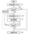 図7は、本発明の実施の第4の形態に係る静電霧化装置の動作を説明するための波形図である。本実施の形態の静電霧化装置にも、前述の図1で示す静電霧化装置の構成を用いることができ、前記制御マイコン7の動作が異なるだけである。注目すべきは、本実施の形態では、前記制御マイコン7は、前記高圧電源回路3から霧化電極13への印加電圧を低下させるにあたって、高圧電源回路3を一旦OFFさせることである。図8は、その動作を説明するためのフローチャートである。前記ステップS23でマイナスイオン放電であるか否かの判定を行い、マイナスイオン放電である場合には、先ずステップS44で前記高圧電源回路3がOFFされ、その後、前記ステップS4で印加電圧の低下制御とともに、前記高圧電源回路3がONされる。その電圧低下によってもマイナスイオン放電が解消しない場合には前記ステップS5からステップS44に戻って、印加電圧の低下制御が繰返される。