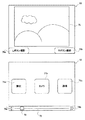 また、撮影ボタン画像76aおよび76bは、簡易撮影プログラム52によって撮影を行うことができる状態(図4に示す撮影可能状態)へと遷移するための操作、すなわち、上記撮影可能操作を表す画像である。このように、本実施形態では、撮影可能状態へと遷移するための操作をメニュー画面(起動受付状態)において表示することによって、メニュー画面から(被選択アプリケーションプログラムを選択せずとも)簡易撮影プログラム52によって撮影を行うことができることを、ユーザにわかりやすく提示することができる。図7に示すように、本実施形態では、撮影可能操作は、Lボタン14IまたはRボタン14Jを押下する操作である。したがって、ユーザは、起動受付状態においてボタン(Lボタン14IまたはRボタン14J)を1回押下するだけで、簡易撮影プログラム52によって撮影を行うことができる状態にすることができる。なお、本実施形態においては、撮影可能操作は、情報処理装置10に設けられた所定のボタン(Lボタン14IまたはRボタン14J)を押下する操作であるとしたが、他の実施形態においては、撮影可能操作は、下側LCD12に表示される所定のボタン画像をタッチする操作としてもよい。