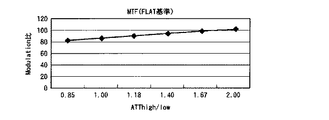 次に、光減衰調整デバイス33における適正なアッテネート率の割合における変曲点について説明する。図16〜図20は、クロストークとMTFとによる再生特性の変曲点に関するグラフである。これらは、全て円形の図6(a)に示すような分布となるように図4(a)に示す第1及び第2の領域34a,34bを設けた場合のアッテネートを施したときの、Rbnd=0.5の場合のグラフである。横軸は、ATThigh/lowである。
