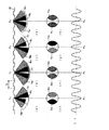 そして、例えば、図8(b)及び図8(d)に示すようにピット又はグルーブの中心付近の位置P2,P4に光ビームが集光された場合には、+1次回折光BP1と−1次回折光BM1とが同様の状態で発生する。そして、0次光B0と、この±1次回折光BP1,BM1とは、図8(f)及び図8(h)に示すように、受光部上で集光され、両プッシュプル領域AP1,AP2の光量が同じであるため、図8(i)に示すように、プッシュプル信号PPは、0となる。図8(a)〜図8(d)中のB0,BP1,BM1は、それぞれ盤面で反射・回折された0次光及び±1次回折光の強度分布の拡がりと、0次光を基準とした位相のズレを模式的に表したものである。