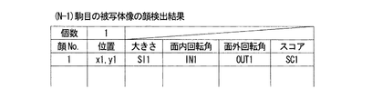 顔検出処理においては,検出された顔の画像領域の個数,検出された顔画像の領域のナンバを示す顔ナンバ,顔画像領域の位置,顔画像領域の大きさ,顔画像領域の面内回転角,顔画像領域の面外回転角およびスコアが検出される。これらの顔の画像領域の個数等が顔検出結果として,被写体像に対応して格納される。顔検出結果として得られる面内回転角とは,顔が正面を向いている場合における顔の傾き角である。面外回転角とは,顔が正面を向いている場合を基準として,その顔が横を向く場合の角度である。