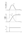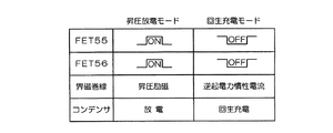 制御信号がローレベルのときにFET55、56はともにオフされる。界磁巻線4にはその直前まで、ダイオード52およびFET56を介した経路に沿って界磁電流が流れており、FET56がオフされると界磁巻線4にはその瞬間に大きな逆起電力が発生する。この逆起電力による電流がダイオード54を介してコンデンサ53に供給され、コンデンサ53が回生充電される。このときの電流経路が図3では矢印Aで示されている。