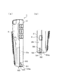 以下、本発明の携帯端末を具現化した第1実施形態について、図面を参照して説明する。図1(a)は、本発明の第1実施形態に係る携帯情報端末を概略的に示す側面図であり、図1(b)は、(a)とは反対側の側面を部分的に示す図である。図2は、図1の携帯情報端末を充電する車載用充電器の一部を概略的に示す斜視図である。図3は、携帯情報端末と車載用充電器とを概念的に示す概念図であり、図4は、携帯情報端末を車載用充電器に載置した状態を説明する説明図である。図5(a)は、携帯情報端末と室内用充電器とを概念的に示す概念図であり、図5(b)は、室内用充電器を携帯情報端末の挿入側から見た概念図である。図6は、携帯情報端末を室内用充電器に載置した状態を説明する説明図である。