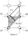 図27を参照して、Pattern1の場合、第2の元画素群の点Aは点P(i、j)、点Bは点P(i+1、j−1)、点Cは点P(i、j+1)、点Dは点P(i+1、j)である。補間係数は、水平方向に[x]:[N−x]、垂直方向に[x+y]:[N−(x+y)]となる。