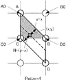 図30を参照して、Pattern4の場合、第2の元画素群の点Aは点P(i、j)、点Bは点P(i+1、j+1)、点Cは点P(i、j+1)、点Dは点P(i+1、j+2)である。補間係数は、水平方向に[x]:[N−x]、垂直方向に[y−x]:[N−(y−x)]となる。