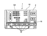 表示操作スイッチ16は、プッシュスイッチ等が用いられている。表示操作スイッチ16は、タクシーメータ1の正面部2から操作可能なように設けられている。そして、表示操作スイッチ16は、CPU11の入力ポートに接続されており、押圧操作に応じてCPU11の入力ポートはHi状態からLow状態に変化する。つまり、CPU11は、入力ポートにおけるHi状態からLow状態への変化を検出する。表示操作スイッチ16は、図7に示すような後続回数画面G2を表示するとき、及び、図8に示すような後続回数情報P2を印字するときなどに、押圧操作される。